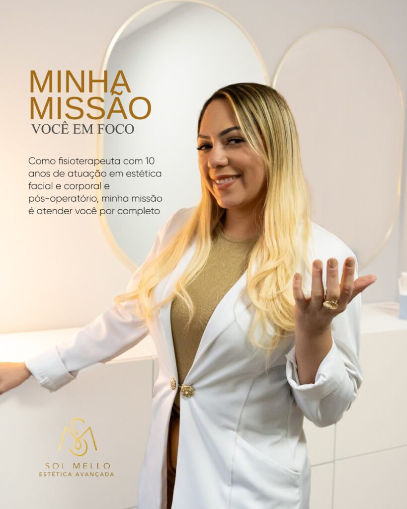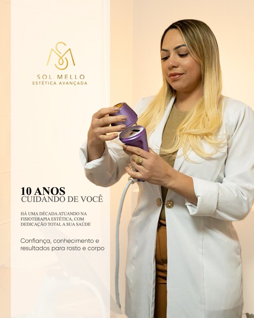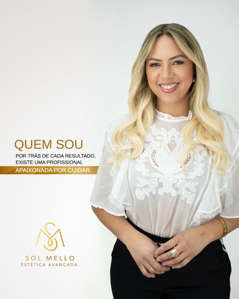 Hoje, à frente da Clínica Sol Mello Estética Avançada, ela é referência em cuidados personalizados, estética regenerativa e pós-operatório humanizado.